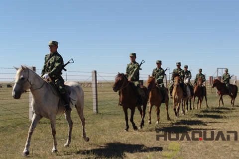 中蒙邊境線上騎馬巡邏的哨兵