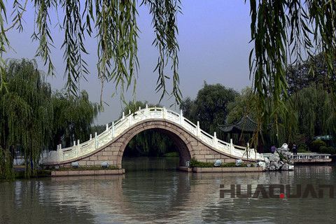 二十四橋在瘦西湖西段,包括二十四橋,春臺(tái)祝壽。清乾隆間稱為"春臺(tái)明月"。二十四橋由漢白玉砌成,四周遍種芍藥,因此又稱為紅藥橋。唐杜牧有流傳千古代詩(shī)篇《寄揚(yáng)州韓綽判官》:“青山隱隱水迢迢,秋盡江南草未凋。二十四橋明月夜,玉人何處教吹簫?” 在春熙臺(tái)前有毛澤東手書(shū)杜牧詩(shī)大理石匾一幅。