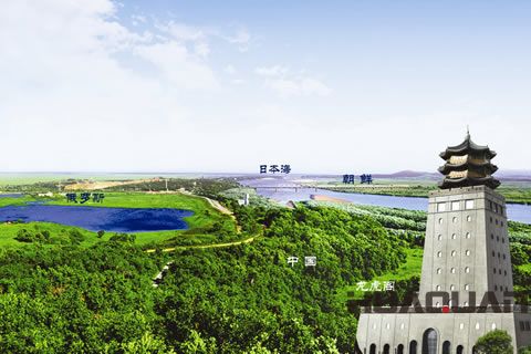站在雄偉壯觀的防川“望海閣”上,既可體驗“一眼望三國”的奇妙,又可以追憶歷史,抒懷心情,別有一番感受。除了一眼望三國景點,這里還有金玉生輝、碧水環繞的綠洲沙漠,以及生長有1.35億年歷史的圖們江紅蓮,也有中俄“土”字界碑、張鼓峰戰役遺址、防川朝鮮族民俗村等人文勝景。優美的風景、濃厚的歷史文化,為防川風景區增添了無與倫比的迷人色彩。