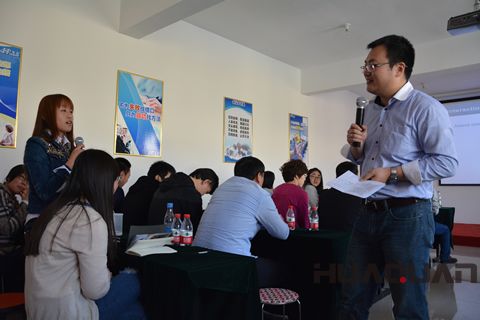 華全公司的辦公大樓就掩映在這片綠樹紅花之中,只是隱隱露出白色的山墻和紅色的瓦頂。辦公大樓二樓的會議室內,卻是人聲鼎沸,氣氛熱烈,“2016濰坊熱點商學院培訓活動”正進行得如火如荼。據我們了解,這場培訓活動由阿里巴巴濰坊公司牽頭組織,濰坊熱點網絡科技有限公司(熱點商學院)具體實施,參加本次活動的52名學員分別來自濰坊譽馬工貿、固強電橋、永豐液機、魯科機械等30余家企業,涵蓋機械制造、體育用品、輕工紡織等各行各業。雖然行業不同,但出于對外貿事業的熱愛,出于對干事創業的一致追求,還是讓他們堅定地聚到了一起。正如活動的主題:濰坊熱點商學院-賦能外貿企業共同成長。雖然,筆者對于英語只是一知半解,對于培訓的內容亦是“似懂非懂”,但透過主講Dominic老師那熱情洋溢、詼諧幽默的講授,以及師生之間熱烈歡快的交流,卻依然能夠清晰地感受到活動的成功。