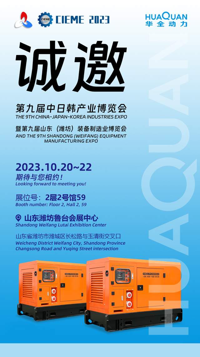 第九屆中日韓產業博覽會即將開幕,山東華全動力應邀參加 2023-10-19